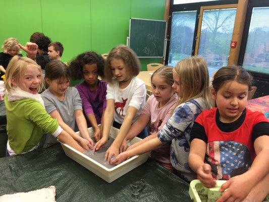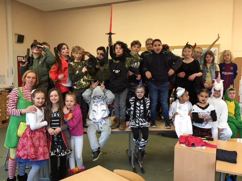 Wir sind die Häschenklasse 4a. In unserer Klasse sind 14 Mädchen und 13 Jungen und unser Klassentier heißt Lino. Auf dem Foto könnt ihr uns auf