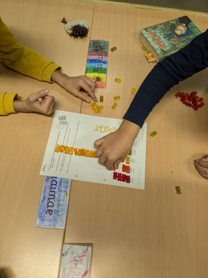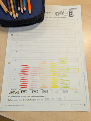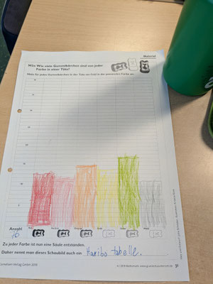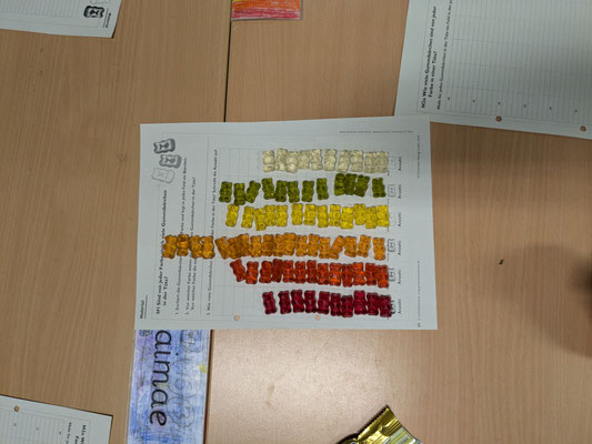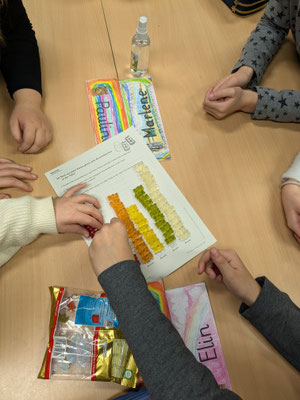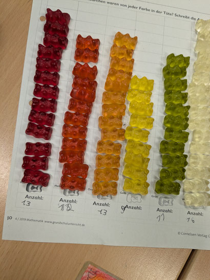 Wir hatten großen und elckeren Spaß Gummibärchern zu zählen und nebenbei die verschiedenen Diagramme kennenzulernen.