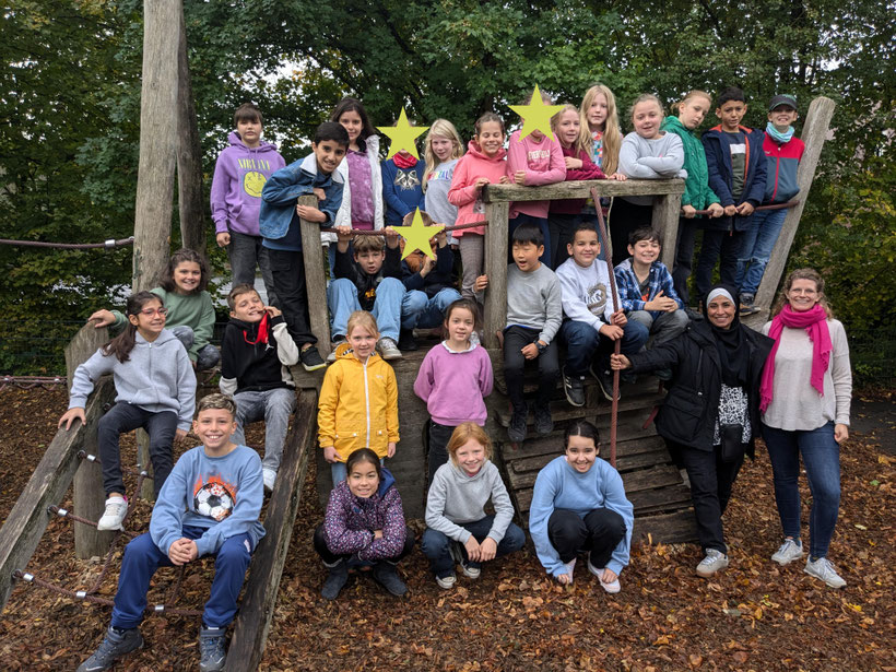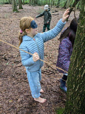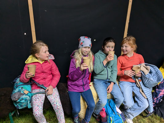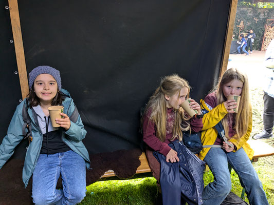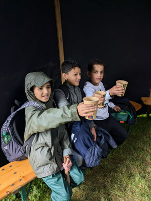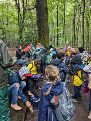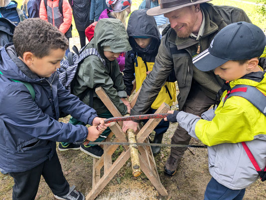 Wir waren bei den Waldjugendspielen und bearbeiteten viele Stationen im Wald. Wir gingen sogar barfuß einen Pfad im Wald entlang, obwohl es sehr nass und kalt war. Wir sägten, schätzten, rannten und hatten viel Spaß. Am Ende gab es für jeden heißen Tee und eine kleine Holzmedaille.