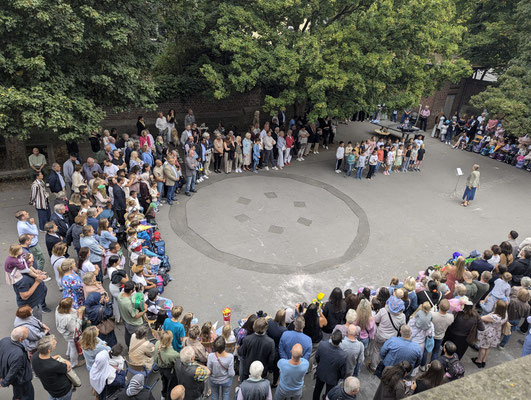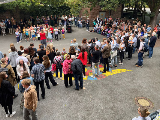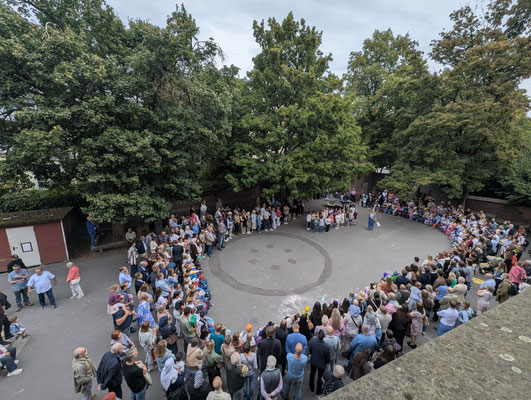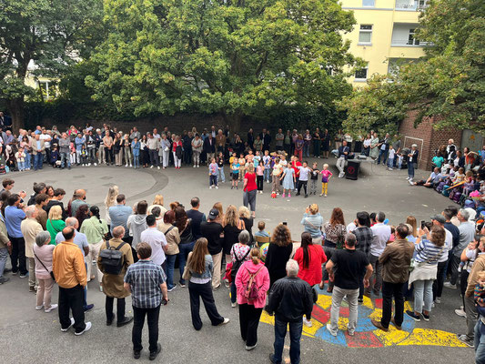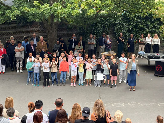 Wir werden einen großen Stuhlkreis auf dem unteren Schulhof aufbauen, so dass jedes Kind einen eigenen Stuhl bekommt. Wir bitten die Eltern und Angehörigen, sich hinter dem Stuhl ihres Kindes aufzustellen. Im Anschluss an die Feier werden die Kinder mit ihren Lehrerinnen für ca. 45 Minuten in ihre Klassen gehen.